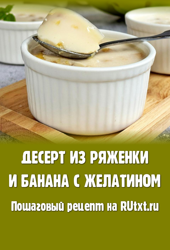 Предлагаю из ряженки и бананов приготовить вкусный, нежный десерт с добавлением желатина. Готовится этот домашний десерт достаточно просто, но ему до полного застывания потребуется, как минимум, 2-3 часа. Сладость этого блюда зависит от спелости бананов, поэтому количество сахара можно регулировать в процессе приготовления. Уверена, сочетание сливочного вкуса ряженки и мягких кусочков банана придётся по вкусу всей семье!
