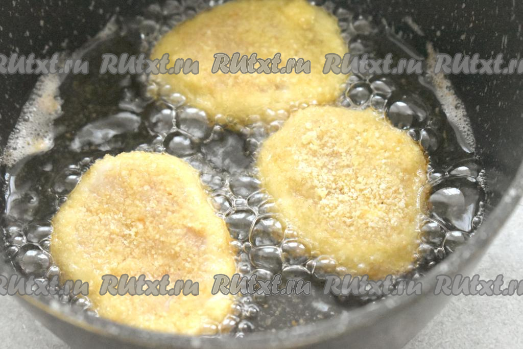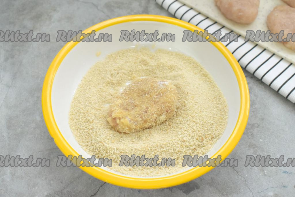 Следом обваливаем наггетсы в панировочных сухарях со всех сторон.