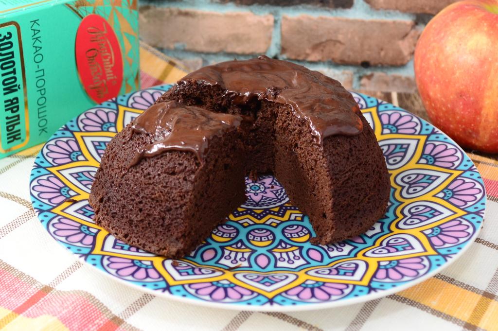 А вот как очень шоколадный, нежный брауни, приготовленный из яблока в микроволновке, выглядит в разрезе. Кусочек этой пористой, воздушной, в меру сладкой выпечки просто тает во рту!