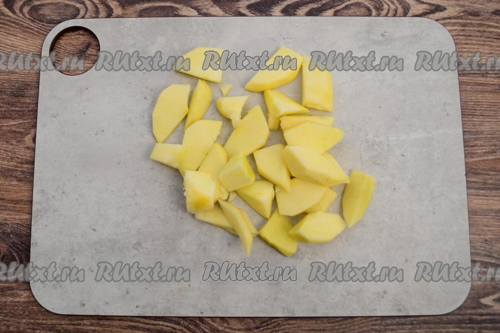 Яблоко очистить от кожуры, нарезать на дольки, не затрагивая семенную коробочку.