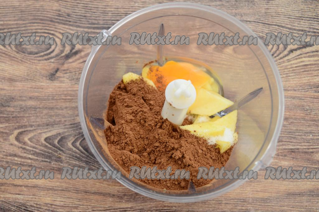 Если у вас нет измельчителя, тогда можно воспользоваться чашей для взбивания и погружным блендером. Или же можно яблоко натереть на мелкой тёрке и перемешать все ингредиенты брауни вручную.