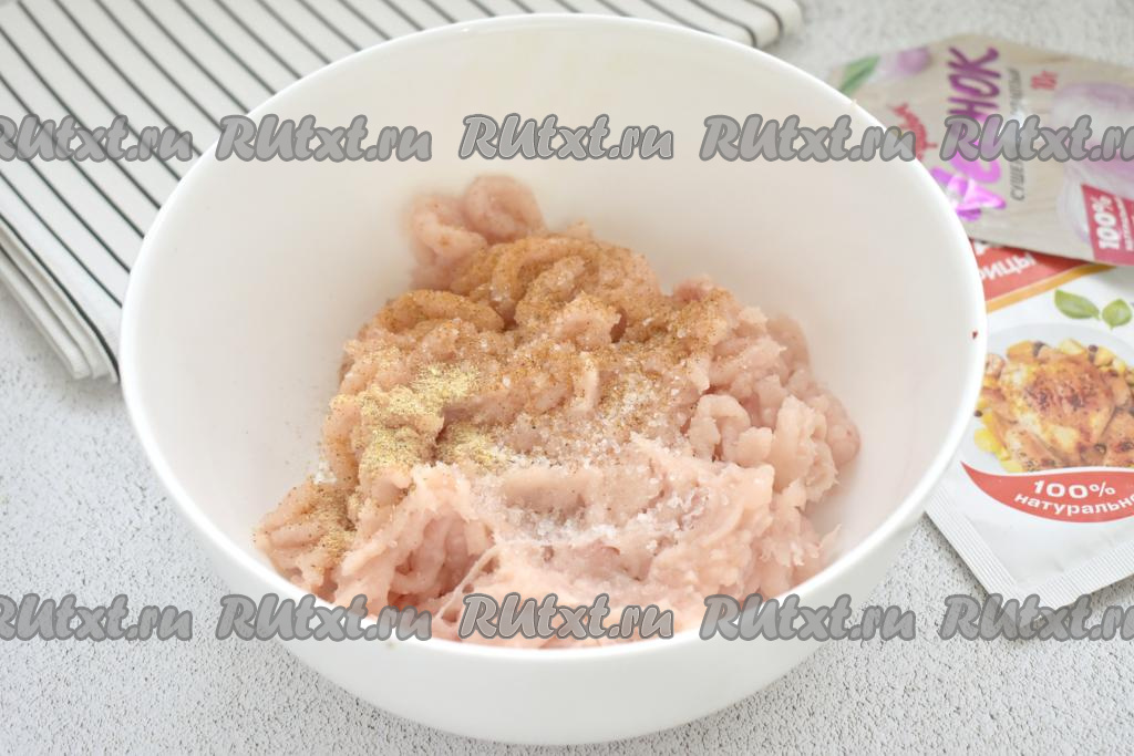 Хорошо перемешиваем куриный фарш со специями.
