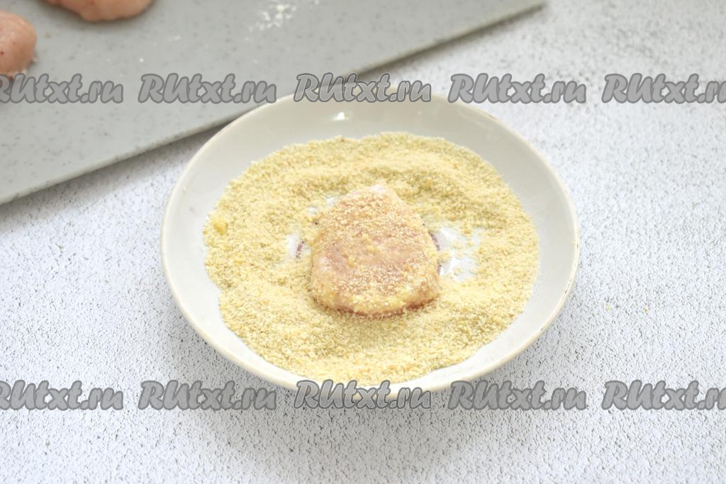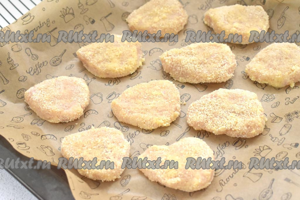 Обваливаем наггетсы в панировочных сухарях со всех сторон.
