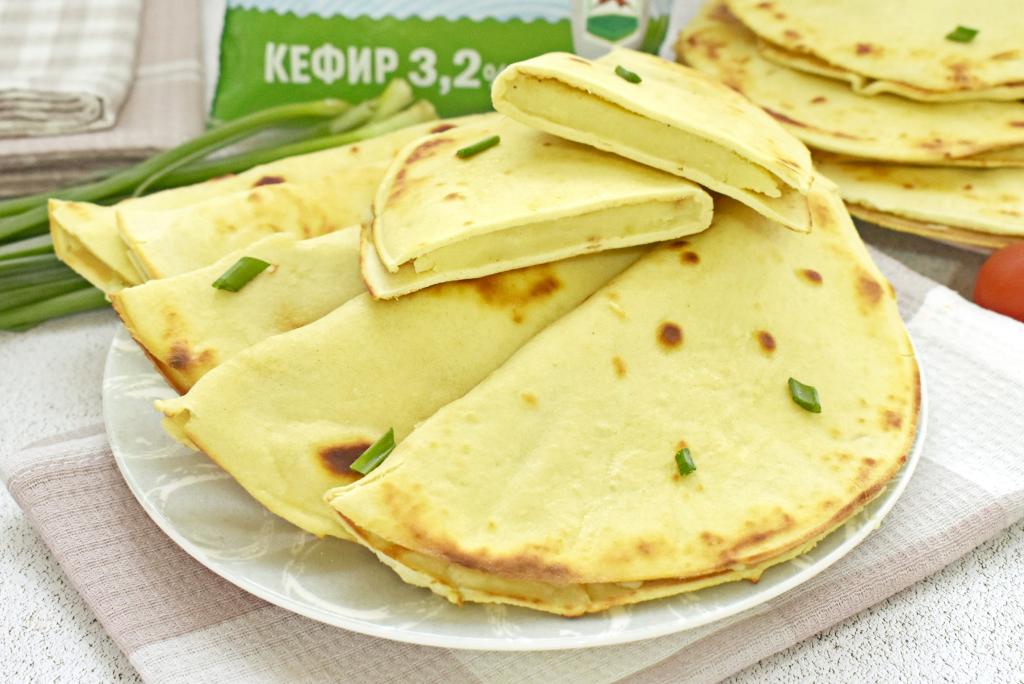 Аппетитные, сытные, вкусные кыстыбыи с картошкой, приготовленные из теста на кефире, к столу подаём горячими.