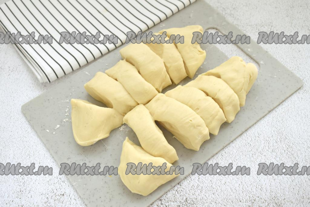 Охлаждённое тесто делим на 12 равных частей.
