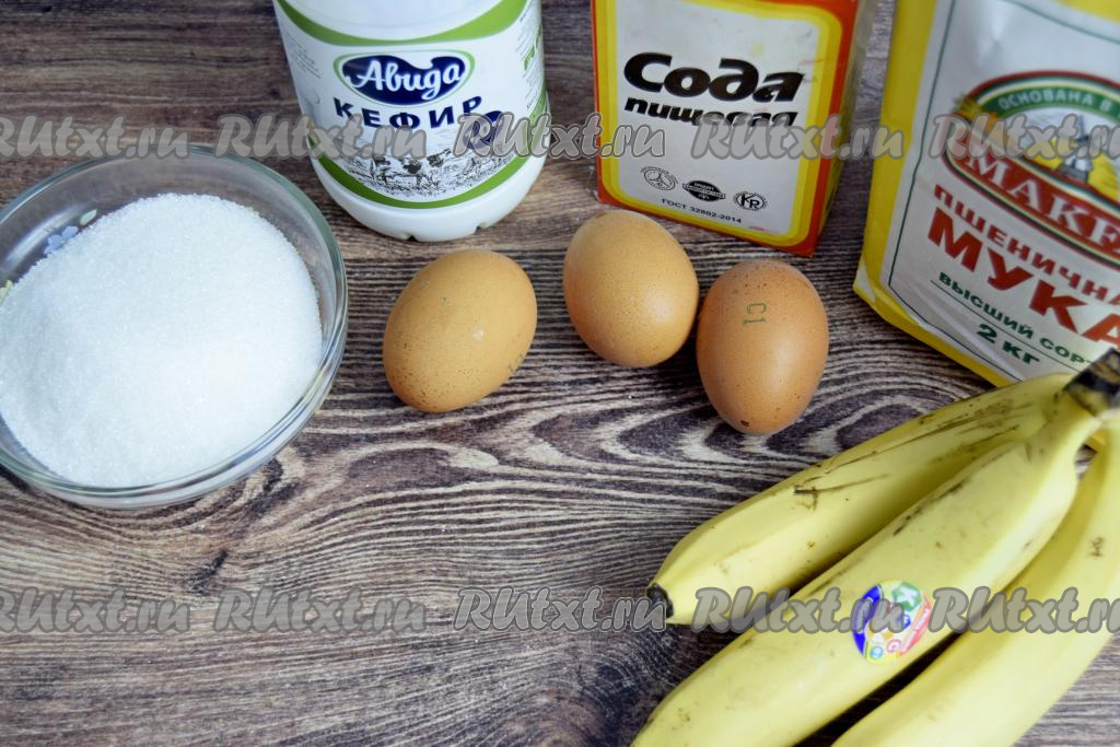Подготовить продукты. Бананы для шарлотки можно взять как спелые, так и чуть недозрелые. Кефир подойдёт любой жирности. Яйца я взяла размера С1.