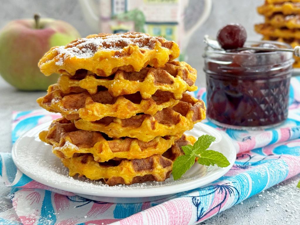 Вот так достаточно просто и быстро можно испечь в вафельнице нежные, мягкие, пышные морковно-яблочные вафли. К столу я предпочитаю подавать их тёплыми.