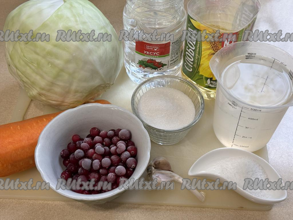 Подготовить продукты. Морковь и чеснок почистить. Свежую клюкву промыть водой (я использовала замороженные ягоды). Капусту промыть водой, верхние листья убрать.