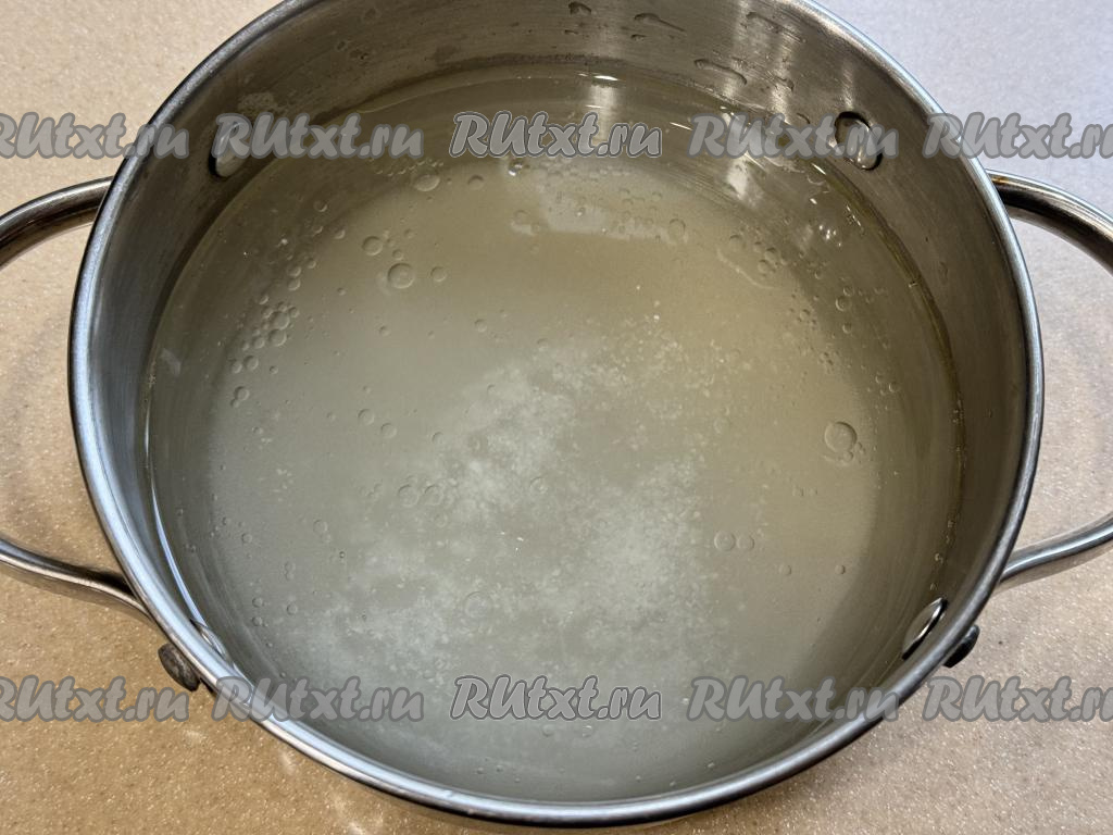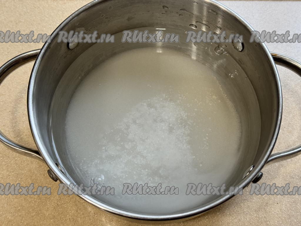 Для приготовления маринада нужно в кастрюлю влить воду, добавить сахар и соль.