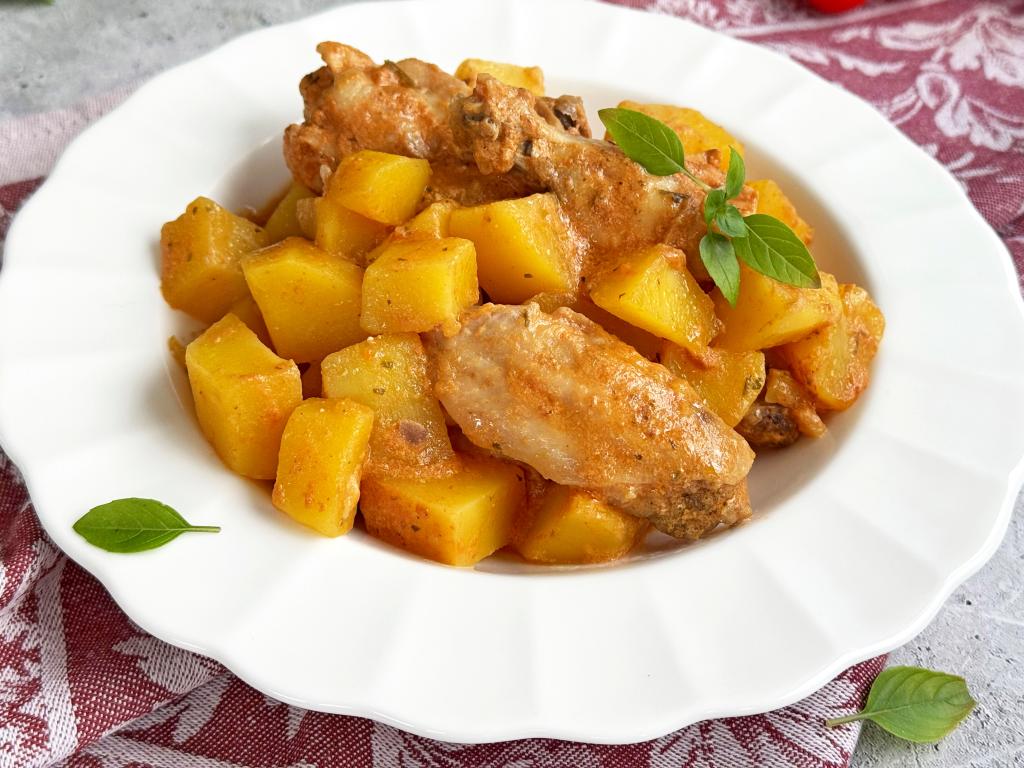 Мультиварка - отличная помощника в приготовлении различных блюд. Я люблю готовить в этой замечательной технике одновременно мясо и гарнир к нему. В этот раз решила потушить в мультиварке картошку с куриными крылышками. Блюдо получилось вкусным, аппетитным и, конечно, сытным. Крылья в процессе тушения стали мягкими, сочными, хорошо пропаренными, картофель - нежным. Это блюдо можно подать и на обед, и на ужин, дополнив маринованными или свежими овощами.