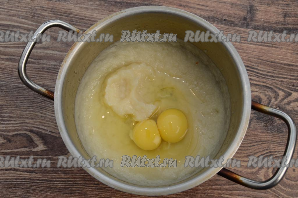 К получившемуся пюре из цветной капусты добавить сырые яйца и ещё раз хорошо пробить блендером.