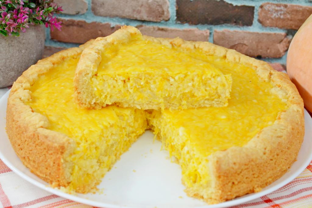 Готовый пирог нарезать на кусочки и подать к столу. В меру рассыпчатая песочная основа этого пирога прекрасно сочетается с нежнейшей начинкой из тыквы и творога. Поверьте, в этой выпечке очень вкусная песочная основа, она съедается до последней крошки!