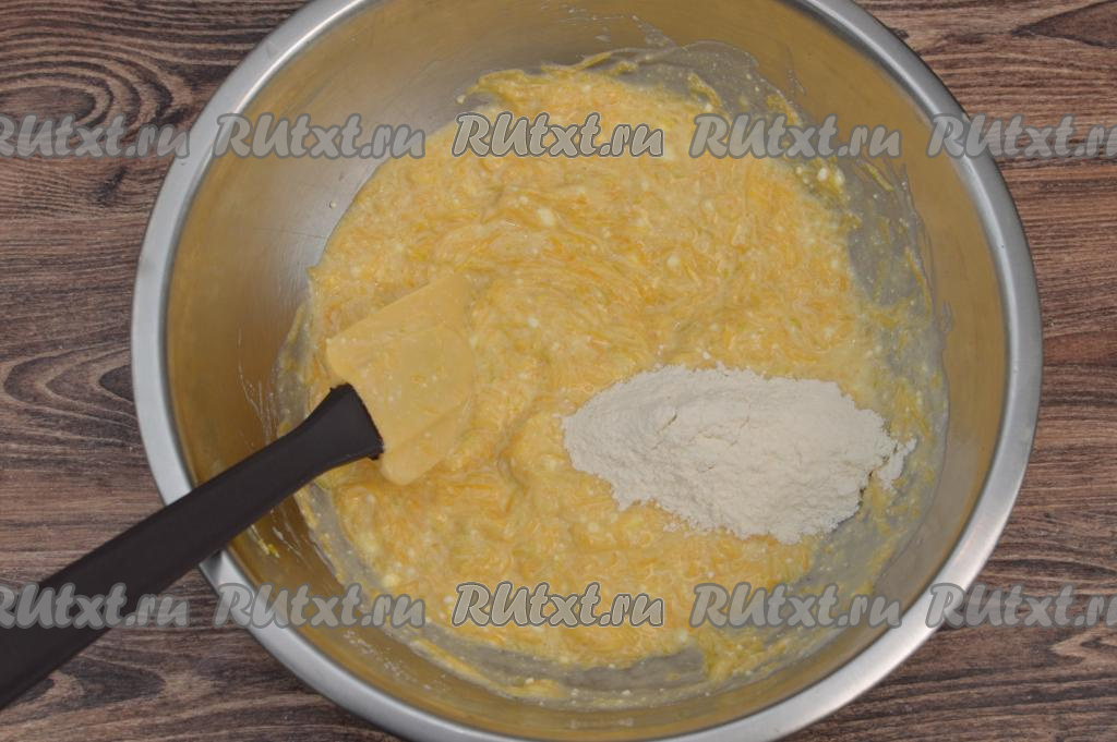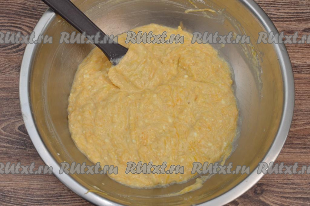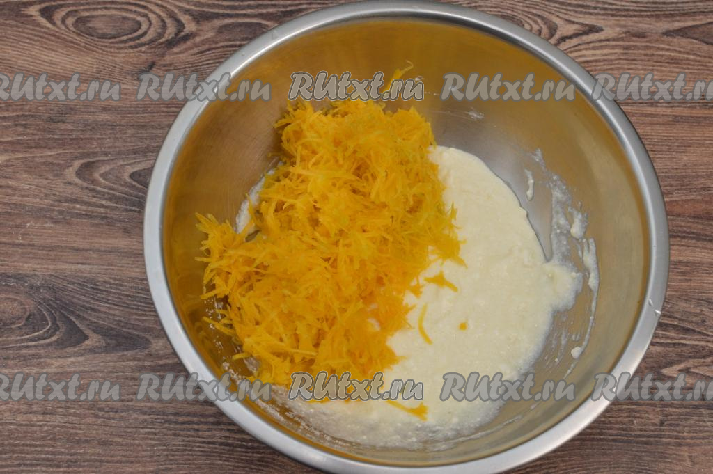 250 грамм тыквы, предварительно очищенной от кожуры и волокон с семечками, натереть на мелкой тёрке, добавить в миску с творожной массой.