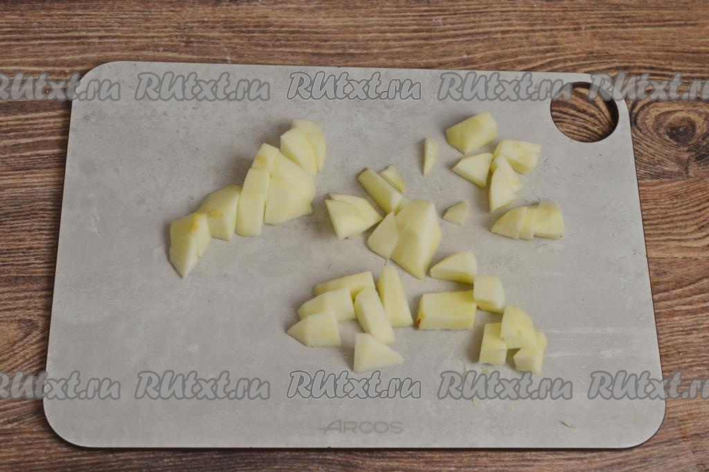 Яблоко очистить от кожуры, нарезать на средние дольки, не затрагивая семенную коробочку.