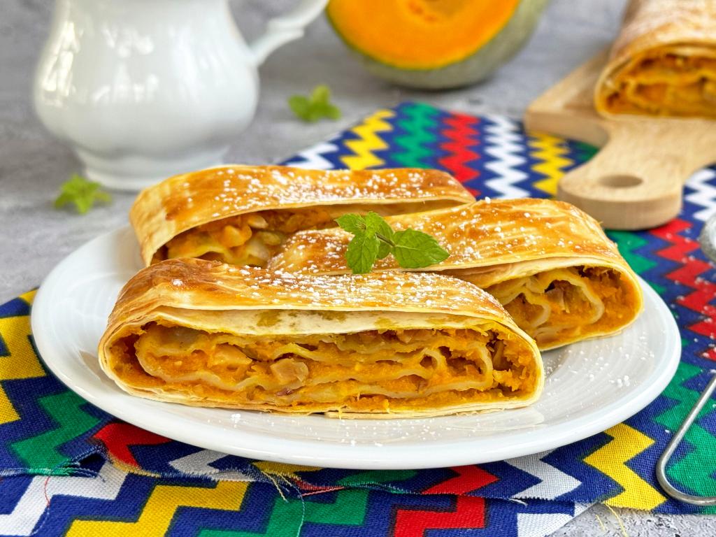Аппетитный рулет из лаваша с нежной, в меру сочной начинкой из тыквы станет отличным дополнением к уютному чаепитию. При подаче, по желанию, его можно слегка присыпать сахарной пудрой. Сформировать этот рулет и запечь его в духовке не составит никакого труда, а в результате вы получите отличную выпечку для себя и своих близких!