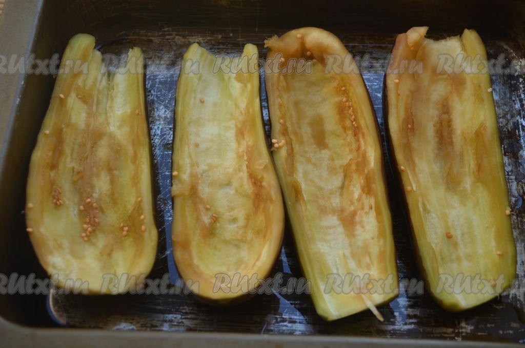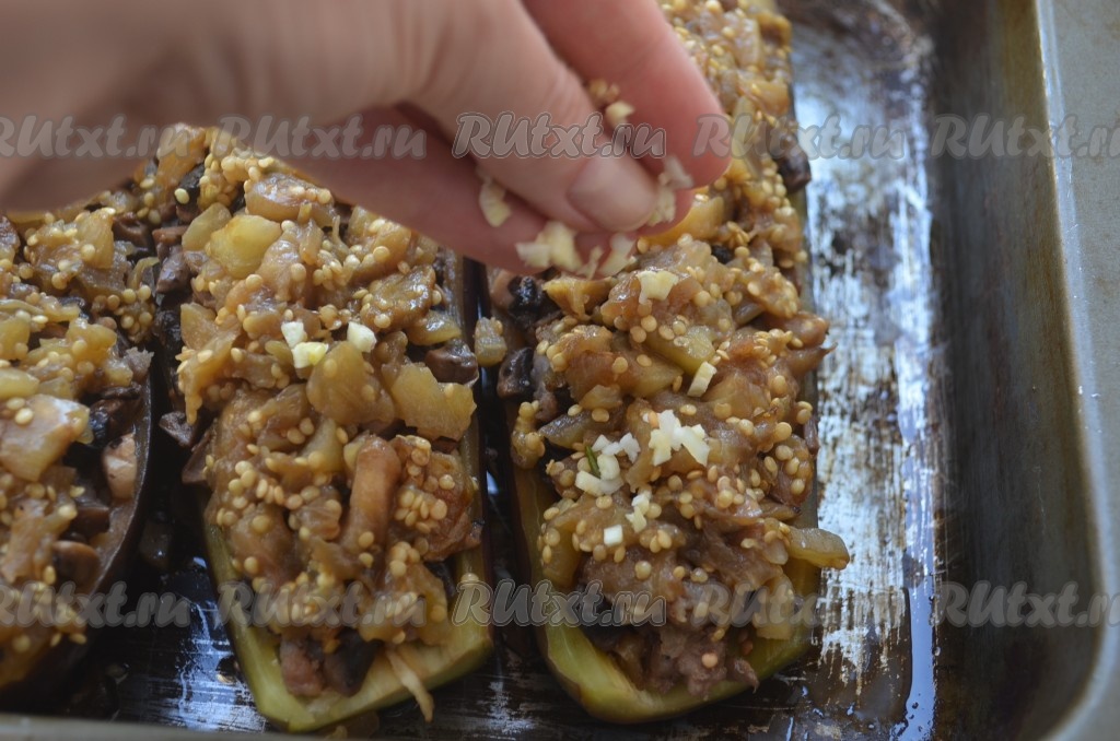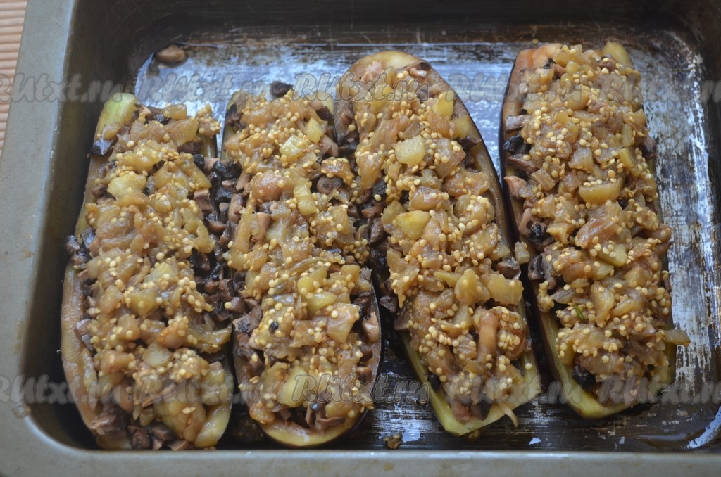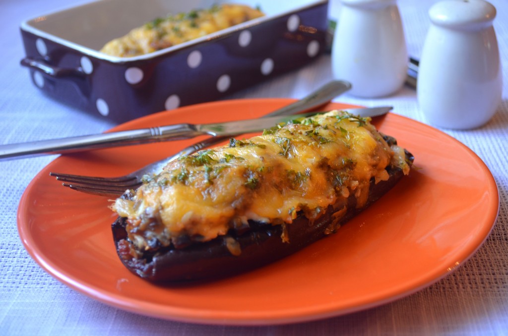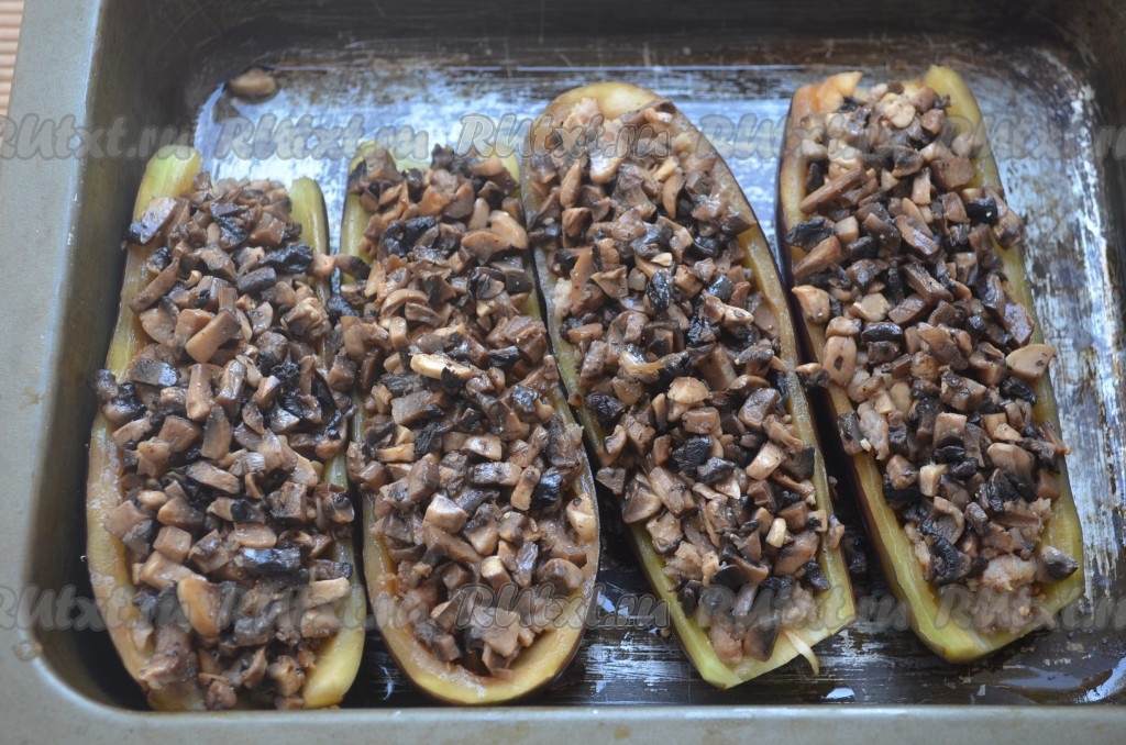 Баклажаны, фаршированные фаршем и грибами, готовы.