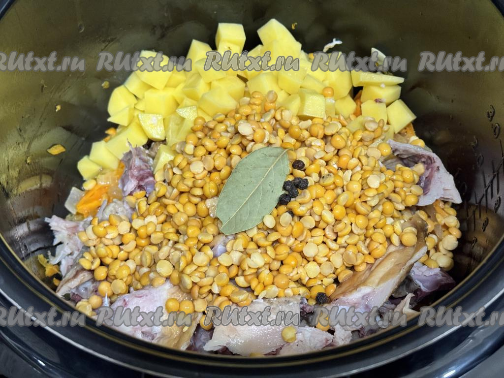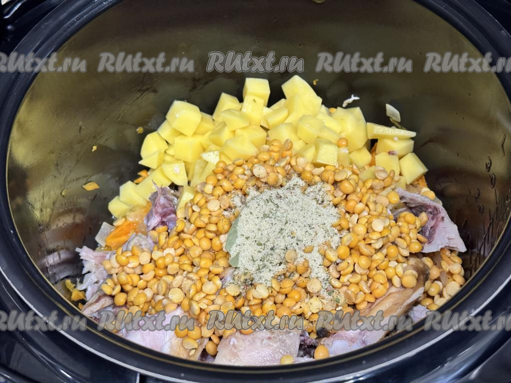 Благодаря предварительному замачиванию, горох точно успеет полностью свариться в мультиварке.