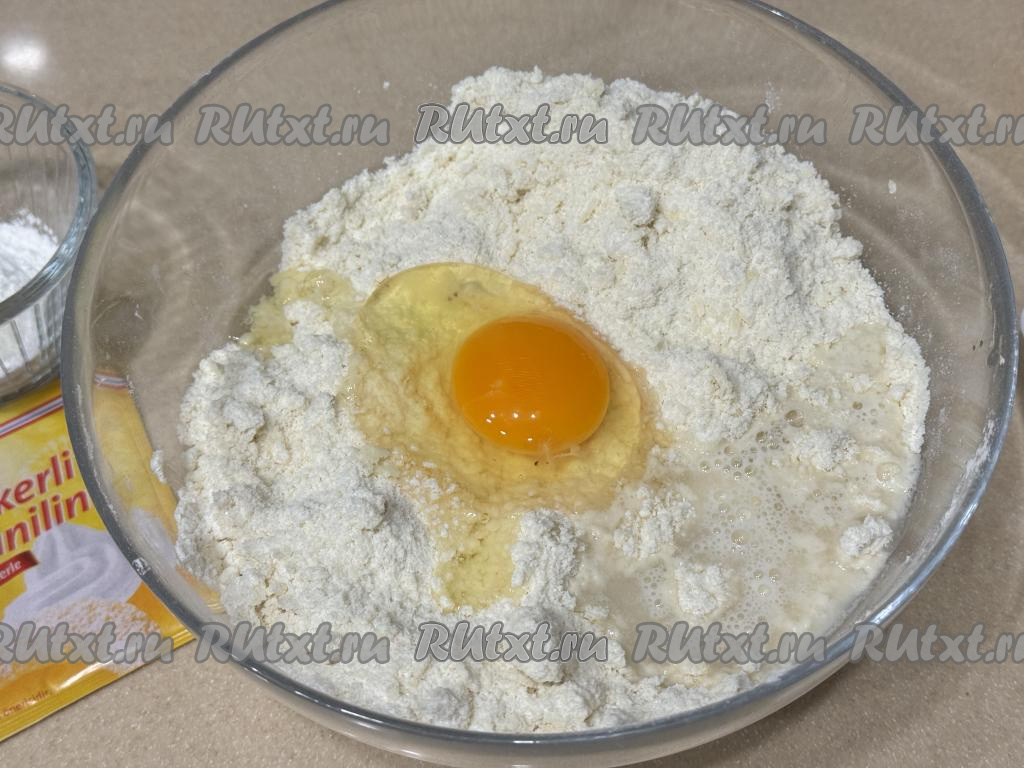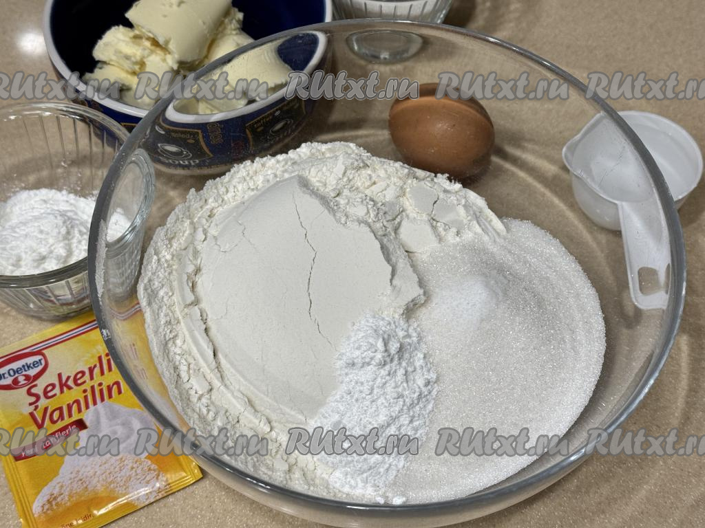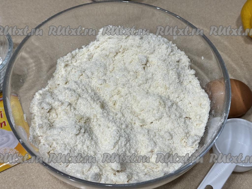 Руками перетереть содержимое миски до получения мелкой, однородной песочной крошки.