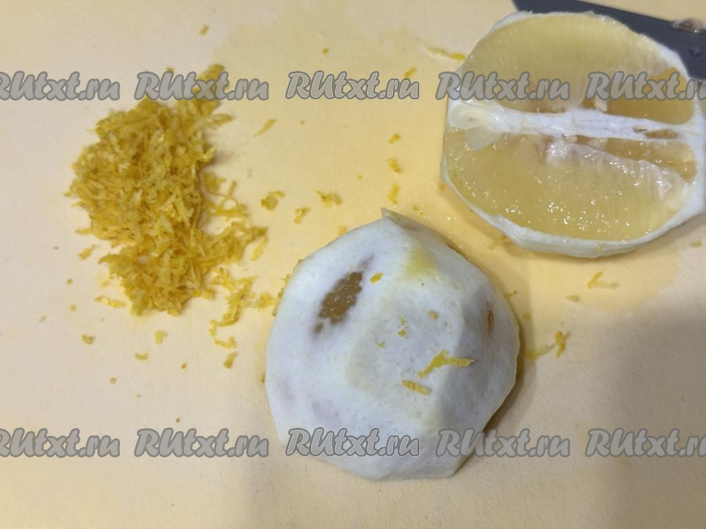 Теперь займёмся начинкой. С лимона нужно снять 1 чайную ложку цедры, не затрагивая белый слой, находящийся под жёлтой цедрой. Затем снять кожуру с лимона.