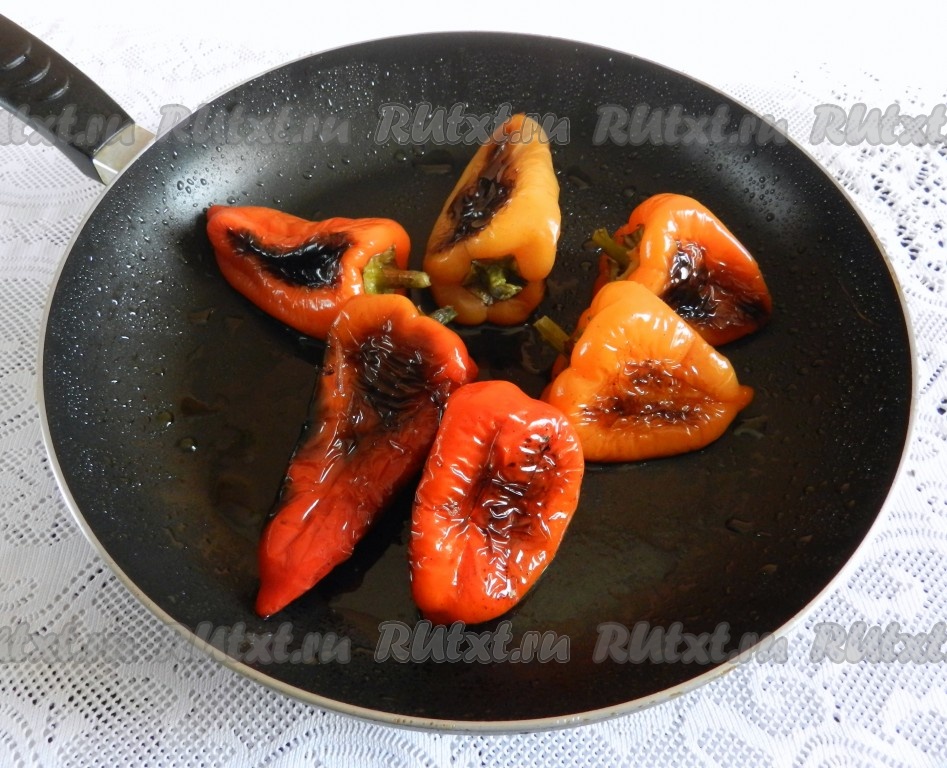 Обжаренный перец оставить на сковороде под крышкой до остывания.