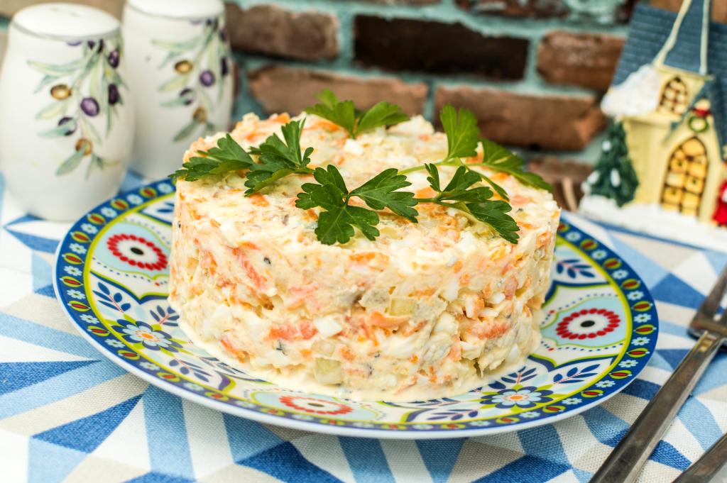 А затем достать тарелку с салатом из холодильника, аккуратно снять кольцо. Украсить по своему вкусу (я просто выложила сверху веточки петрушки) и подать к столу. Аппетитный, очень вкусный, достаточно сытный салат, приготовленный с варёным минтаем и морковью, отлично разнообразит ваше меню и в будни, и в праздники!