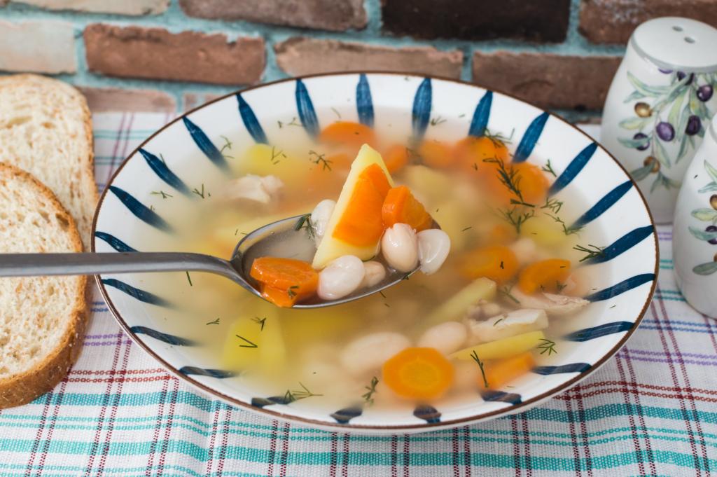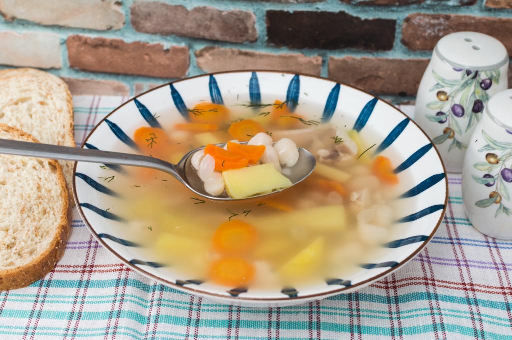 Я очень люблю фасолевые супы. В этот раз предлагаю сварить суп из белой сухой фасоли с курицей. Блюдо получается аппетитным, сытным. Фасоль в процессе варки делает и бульон, и суп особенно вкусным и насыщенным. Безусловно это блюдо можно приготовить и с консервированной фасолью, но в этом случае достичь насыщенности настоящего фасолевого супа не получится. Моей семье очень нравится это первое блюдо, поэтому и вам советую его попробовать!