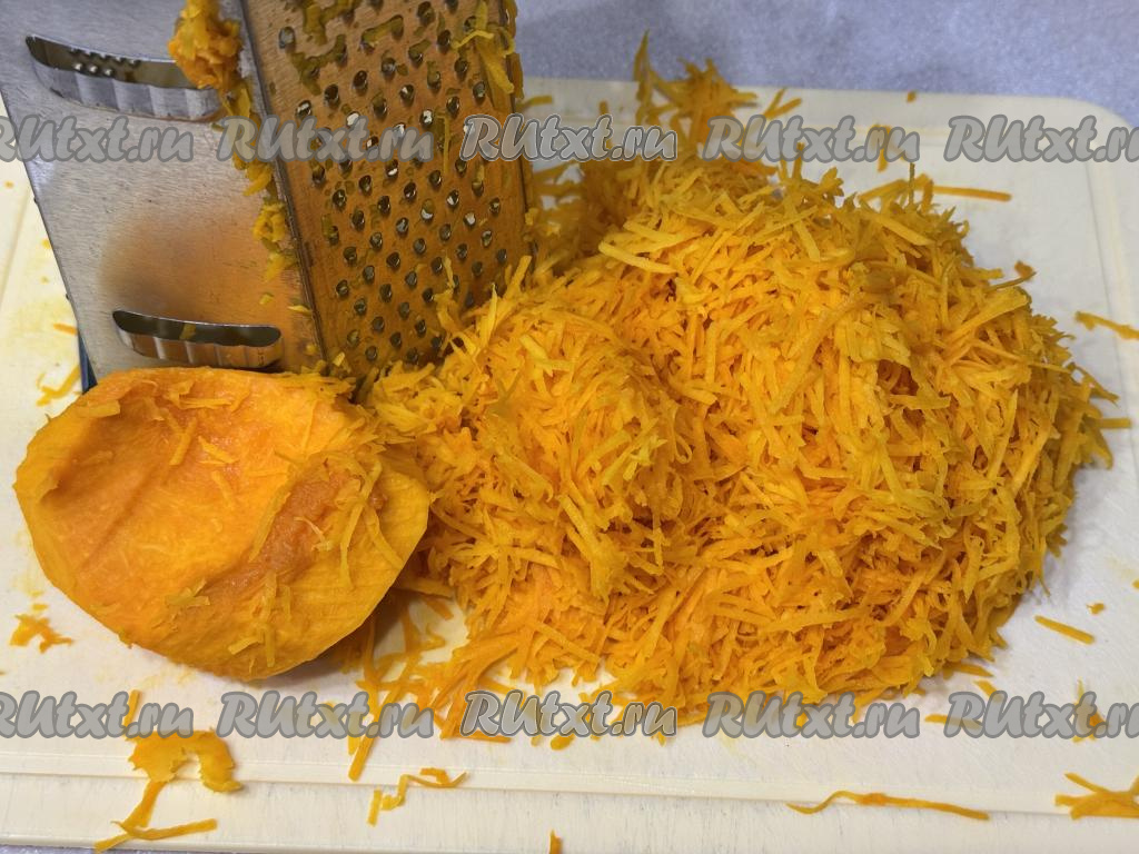 240 грамм тыквы, очищенной от кожуры и волокон с семечками, натереть на мелкой тёрке.