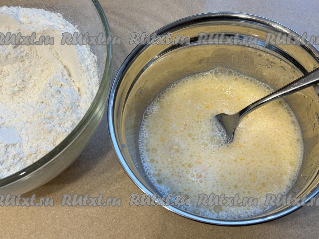 Перемешать молочно-ячиную смесь вилкой до однородности.