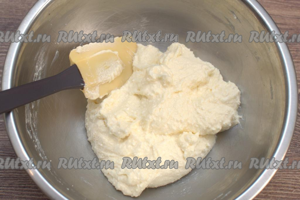 Затем всыпать соду, вмешать её в творожную массу.