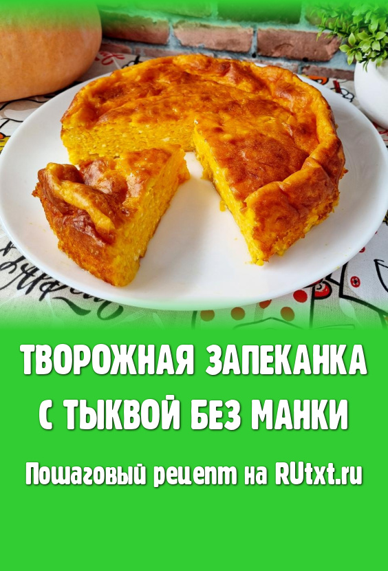 Мне очень нравится сочетание творога и тыквы, поэтому решила соединить эти 2 ингредиента и приготовить запеканку в духовке. Чаще всего в состав этой выпечки входит манка. Но мне хотелось, чтобы творожная запеканка с тыквой просто таяла во рту, поэтому я сделала её без манки. Безусловно, она не будет такой пышной, как запеканка из творога с манкой, но зато она настолько нежная, мягкая, что есть её одно удовольствие. Эта творожная запеканка хорошо держит форму, отлично режется, есть её можно и тёплой, и полностью остывшей.