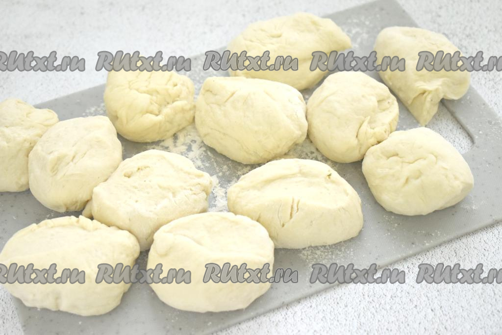 Поднявшееся тесто делим на 10-12 равных частей.