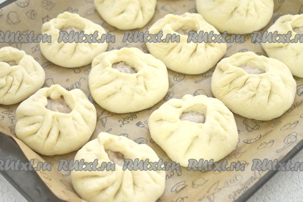 На противень, застеленный пергаментом, выкладываем сформированные беляши на небольшом расстоянии друг от друга (беляши увеличатся в размере в процессе выпечки). Оставляем беляши на расстойку в тёплом месте минут на 15-20.
