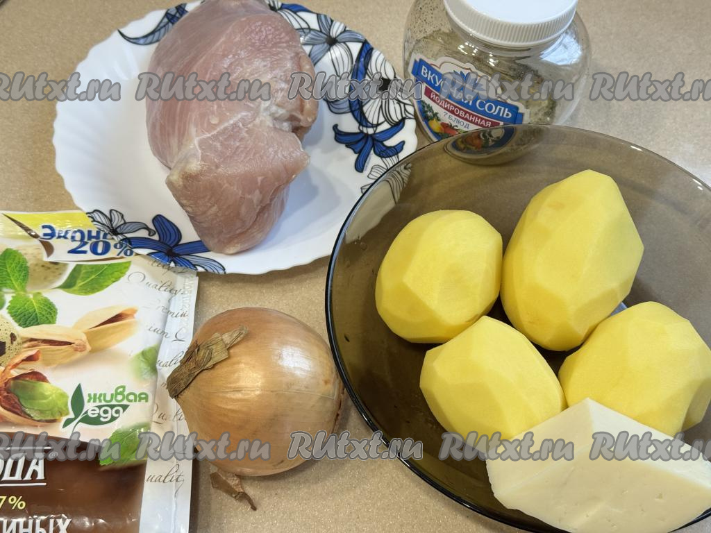 Картошку нарезать на кружочки толщиной 0,5 сантиметра, выложить внахлёст поверх индейки и лука.