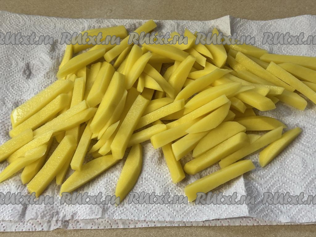 Затем выложить картошку на бумажные полотенца (или салфетки) на 5 минут, чтобы она обсохла.