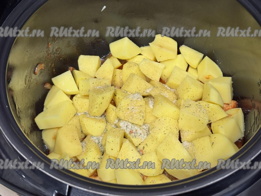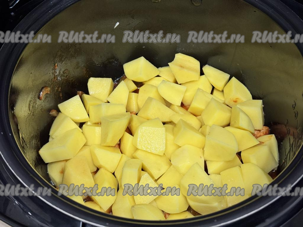 Картошку для азу нарезать на средние кубики, добавить в чашу мультиварки.