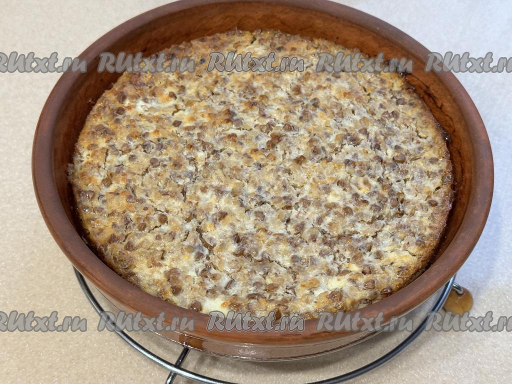 Аппетитную, вкусную, нежную запеканку, приготовленную из гречки с творогом, к столу можно подать и тёплой, и полностью остывшей. Эта выпечка хорошо режется на части и очень аппетитно смотрится в разрезе.