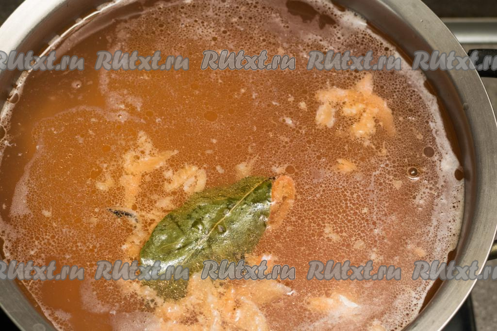 После закипания воды уменьшить огонь, снять с поверхности бульона пену и варить 20 минут.