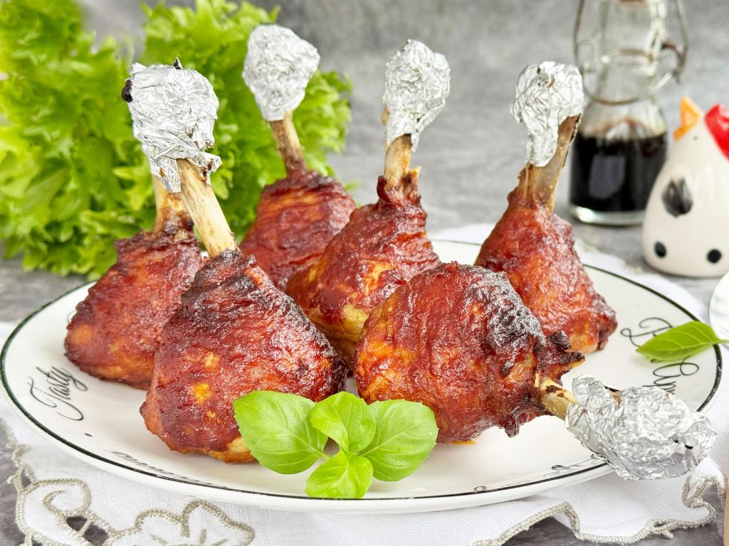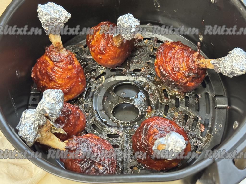 Предлагаю запечь в аэрогриле куриные ножки в виде чупа-чупсов. Куриные ножки получаются очень красивыми, покрытыми глянцевой корочкой снаружи и нежной, сочной мякотью внутри. Это мясное блюдо аппетитно смотрится и на домашнем, и на праздничном столе.