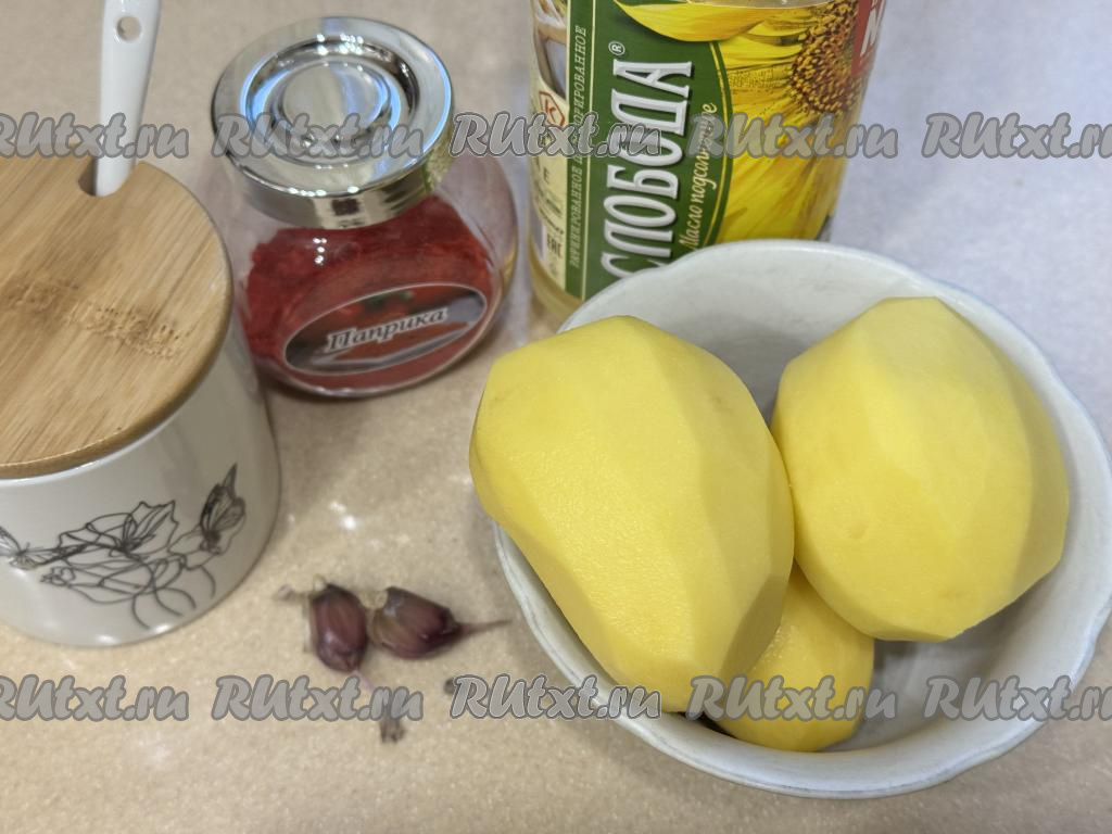 Подготовить продукты. В качестве специй я взяла молотую паприку, вы можете взять свои любимые специи. Картошку и чеснок очистить.