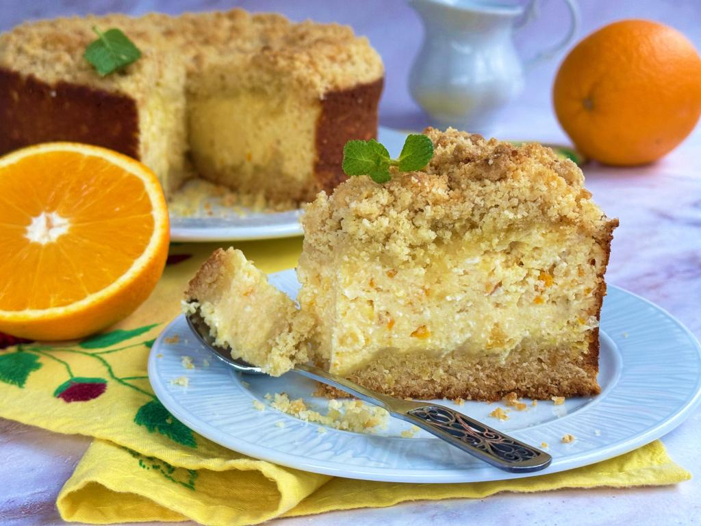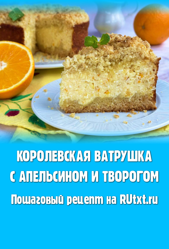 Королевская ватрушка, приготовленная с апельсином и творогом, - простая и очень вкусная выпечка, в которой сочетается в меру рассыпчатая песочная основа и ароматная, нежная начинка. Для этого пирога даже тесто вымешивать не нужно, достаточно будет просто смешать ингредиенты до получения теста-крошки. Приготовьте королевскую ватрушку с творожно-апельсиновой начинкой и насладитесь её восхитительным вкусом и ароматом!