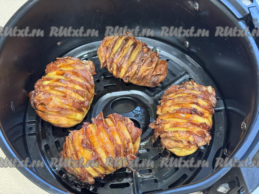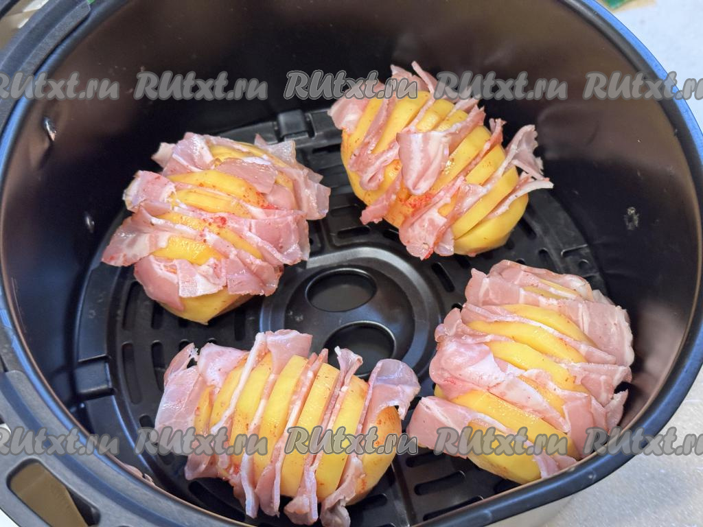 Выложить картошку-гармошку с беконом на решётку в чашу аэрогриля.
