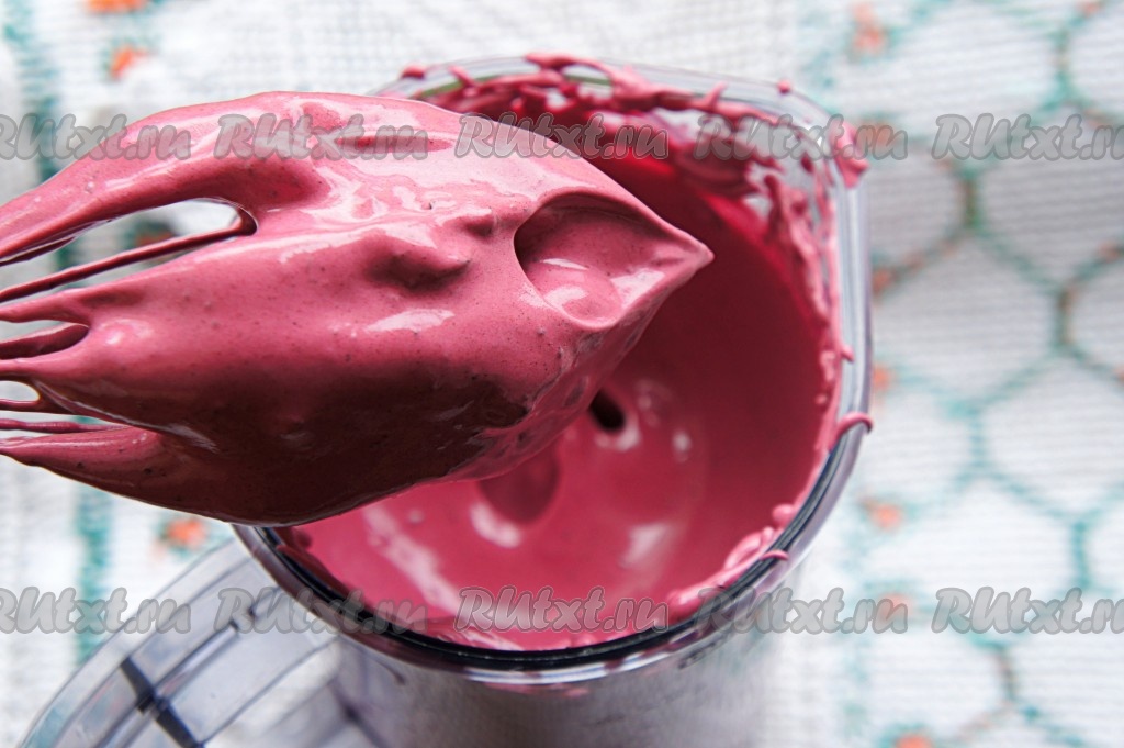 С помощью блендера (используйте насадку для взбивания) взбейте все ингредиенты на максимальной скорости в течение 2-3 минут. Мусс должен получиться достаточно густым (см. фото).
