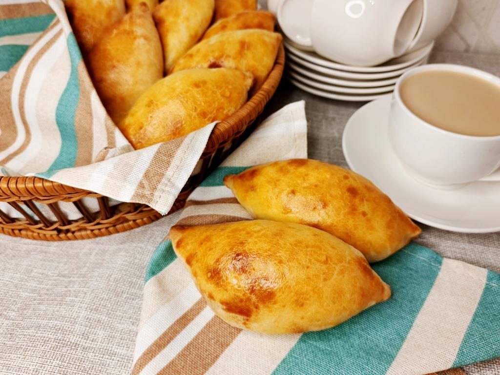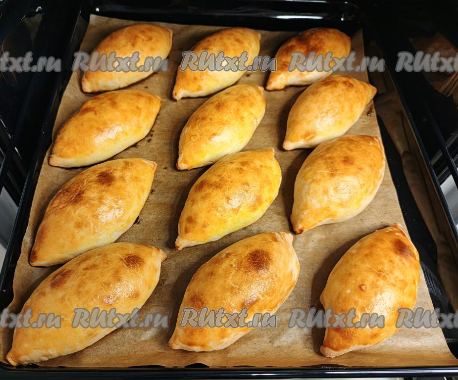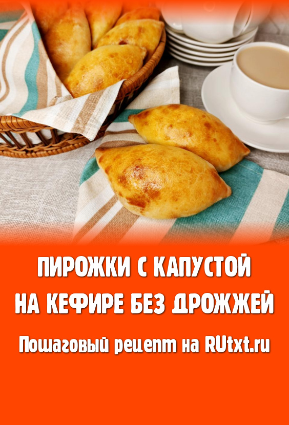 Ароматные, румяные бездрожжевые пирожки с капустой достать из духовки. Сразу испечь оставшиеся пирожки из теста, замешанного на кефире.