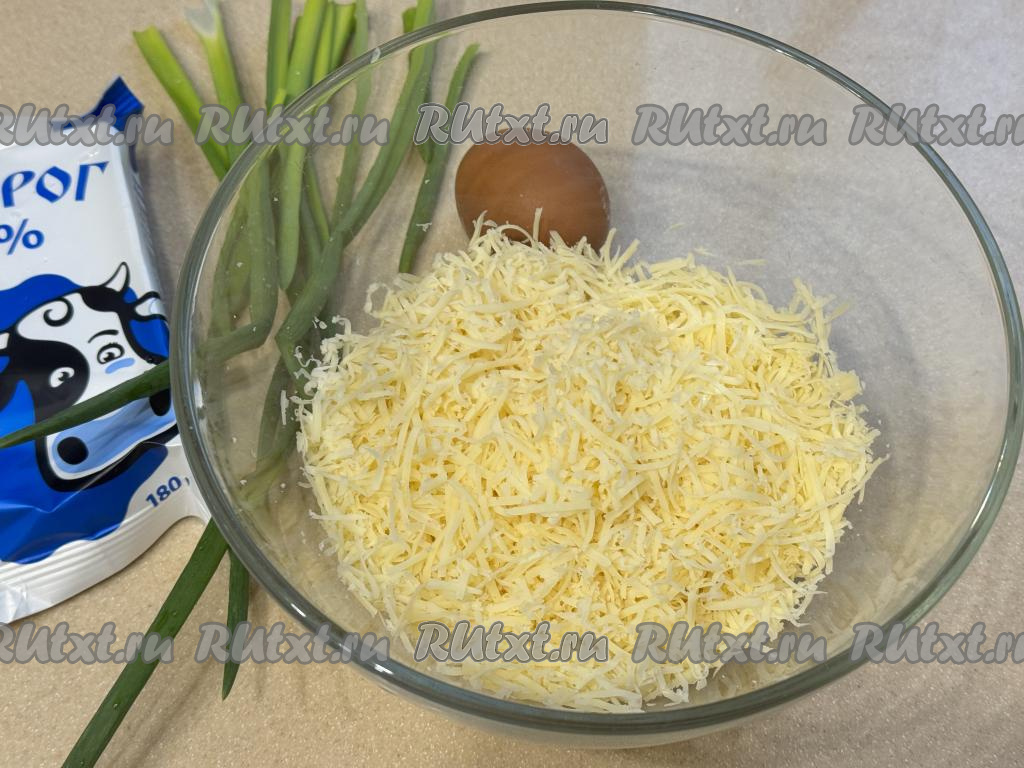 Сыр натереть на мелкой тёрке в глубокую миску.