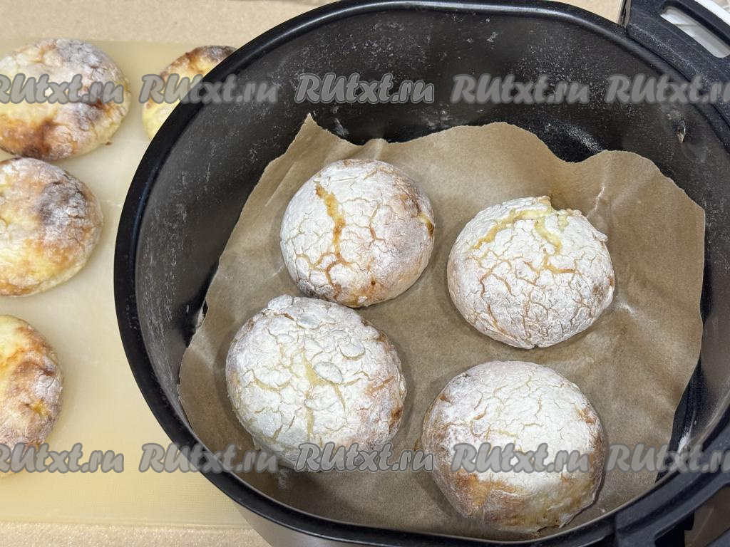 Чашу аэрогриля застелить пергаментом, выложить сырники, сколько поместиться в чашу (у меня поместились 4 штуки).