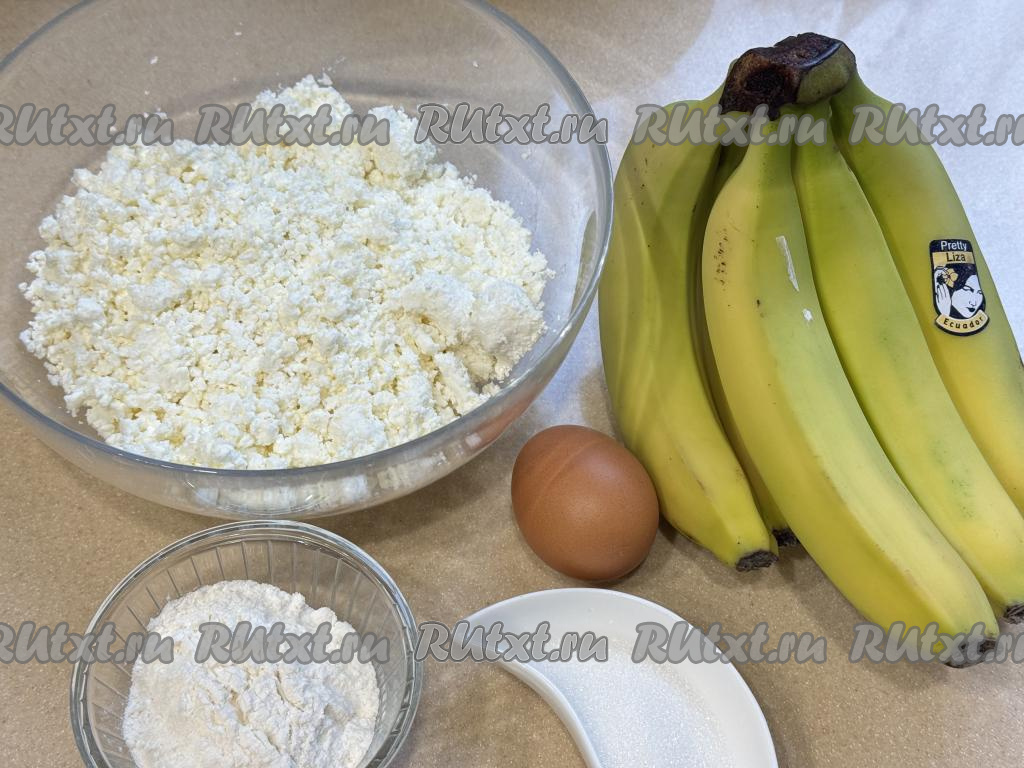 Подготовить продукты. Творог желательно взять жирностью не менее 5%. Банан лучше брать сладкий.