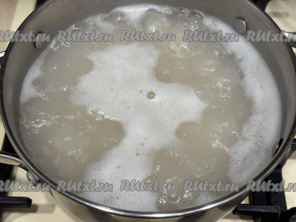 В кастрюле вскипятить подсоленную воду, выложить промытый рис, перемешать. Ещё раз дать воде закипеть, уменьшить огонь, варить рис до готовности (минут 20-25, рисинки должны стать достаточно мягкими).