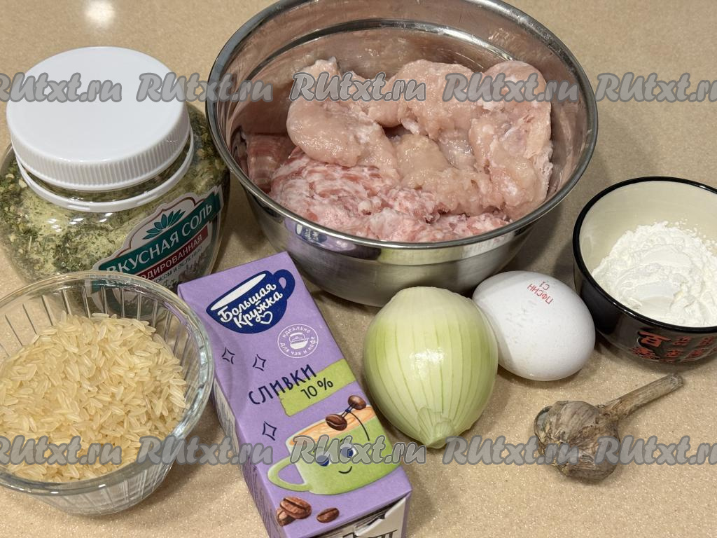 Подготовить продукты. Лук и чеснок почистить. Для формирования ёжиков можно взять любой как домашний фарш, так и покупной. Я взяла кусочки свинины и куриного филе, пропустила их через мясорубку в достаточно глубокую миску и получила отличный курино-свиной фарш для формирования фрикаделек. Рис тщательно промыть под проточной водой.