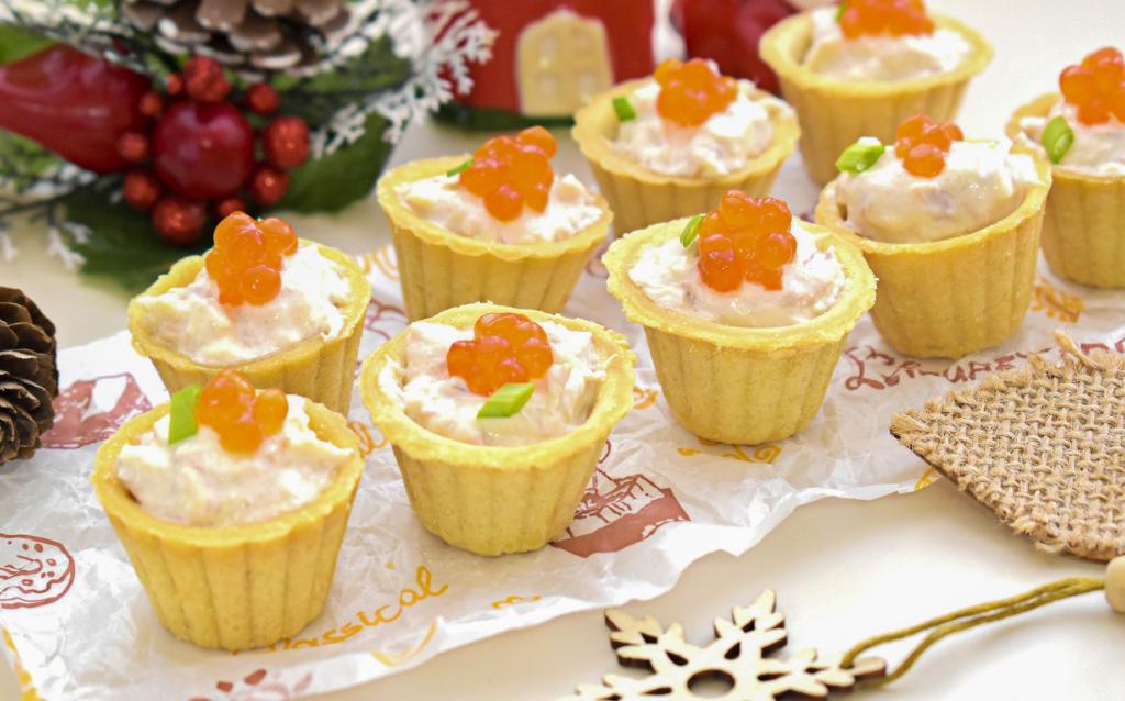 Подаём закуску к столу. Аппетитные тарталетки с нежной, пикантной начинкой из консервированного тунца и творожного сыра отлично дополнят любое праздничное застолье!