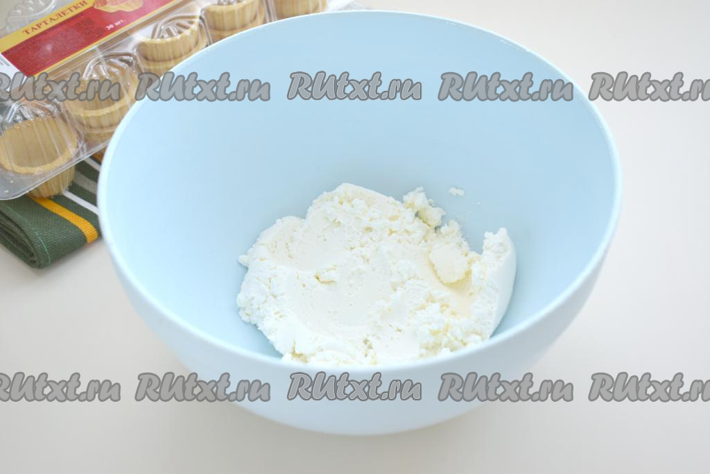 Творожный сыр кладём в миску.